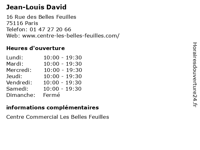 | Lundi | 10:00-19:30 |