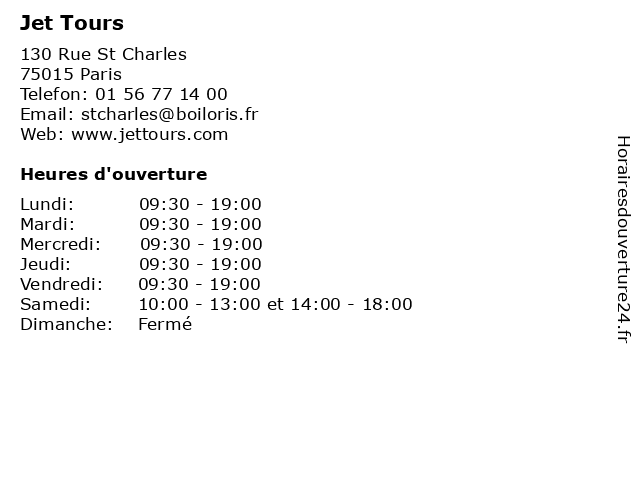 1 Jet Tours (Distance: 1,65 km) 71 Rue Lecourbe,, 75015 Paris agence, billet d'avion et hôtel pour votre club, jet, séjour, tours, voyage 2 Jet Tours (Distance: 3,12 km) 168 Boulevard Jean Jaurès, 92100 Boulogne-Billancourt agence, billet d'avion et hôtel pour votre club, jet, séjour, tours, voyage 3 Jet Tours (Distance: 3,15 km) 1 Avenue Andre Morizet, 92100 Boulogne-Billancourt agence, billet d'avion et hôtel pour votre club, jet, séjour, tours, voyage 4 Jet Tours (Distance: 3,36 km) 14 boulevard Jean Jaures, 92100 Boulogne-Billancourt agence, billet d'avion et hôtel pour votre club, jet, séjour, tours, voyage 5 Jet Tours (Distance: 4,90 km) 22 Avenue Jean Jaures, 92140 Clamart agence, billet d'avion et hôtel pour votre club, jet, séjour, tours, voyage 6 Jet Tours (Distance: 5,18 km) 17 Rue Gabriel Peri, 92300 Levallois Perret agence, billet d'avion et hôtel pour votre club, jet, séjour, tours, voyage  |