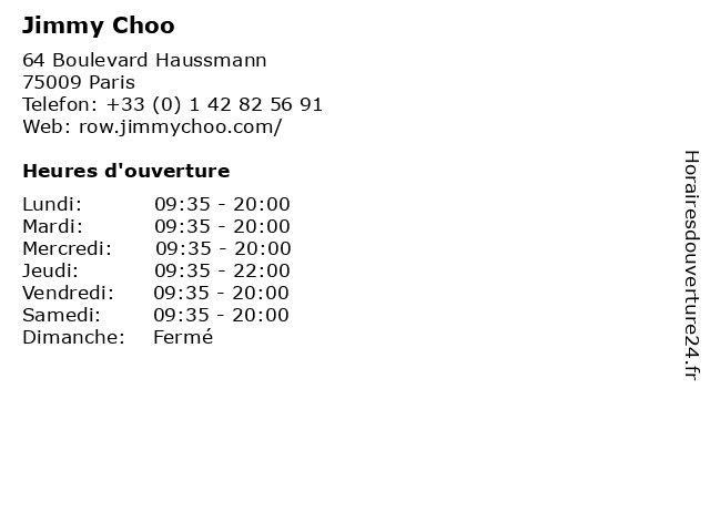 1 Jimmy Choo (Distance: 0,24 km) 40 Boulevard Haussmann, 75009 Paris accessoires, choo, femme, homme, jimmy 3 Jimmy Choo (Distance: 0,72 km) 376 Rue Saint-Honoré, 75001 Paris accessoires, baskets, chaussures, choo, femmes, hommes, jimmy, mode 4 Jimmy Choo (Distance: 1,78 km) 34 Avenue Montaigne, 75008 Paris accessoires, choo, femme, homme, jimmy 5 Jimmy Choo (Distance: 1,83 km) 19 Rue de la Monnaie, 75001 Paris accessoires, choo, femme, homme, jimmy 6 Jimmy Fairly (Distance: 0,07 km) 64 boulevard Haussmann, 75009 Paris accessoires, boutique, fairly, jimmy, lunettes, mode, optique |
