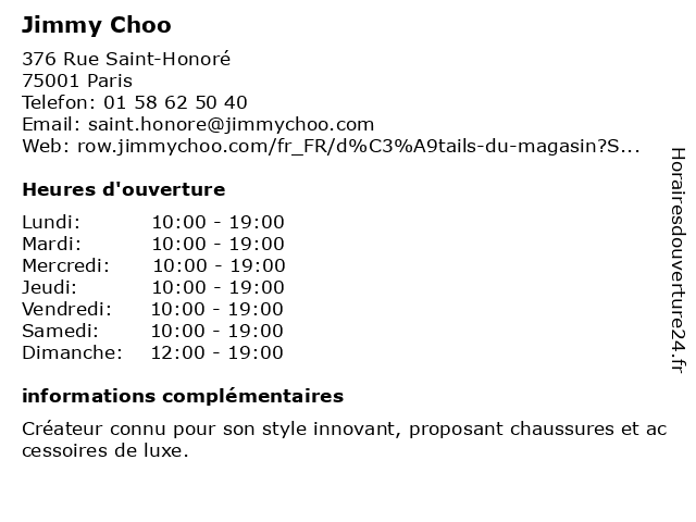 2 Jimmy Choo (Distance: 0,72 km) 64 Boulevard Haussmann, 75009 Paris accessoires, choo, femme, homme, jimmy 3 Jimmy Choo (Distance: 0,81 km) 40 Boulevard Haussmann, 75009 Paris accessoires, choo, femme, homme, jimmy 4 Jimmy Choo (Distance: 1,44 km) 34 Avenue Montaigne, 75008 Paris accessoires, choo, femme, homme, jimmy 5 Jimmy Choo (Distance: 1,46 km) 19 Rue de la Monnaie, 75001 Paris accessoires, choo, femme, homme, jimmy 6 Jimmy Guichard - Échographiste (Distance: 8,44 km) 15 Boulevard Paul Vaillant Couturier, 93100 Montreuil bien-être, en, forme, guichard, jimmy, kinésithérapie, remise, rééducation, Échographiste |
