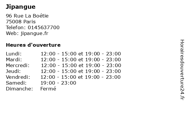 | Vendredi | 12:00-15:00 et 19:00-23:00 |
