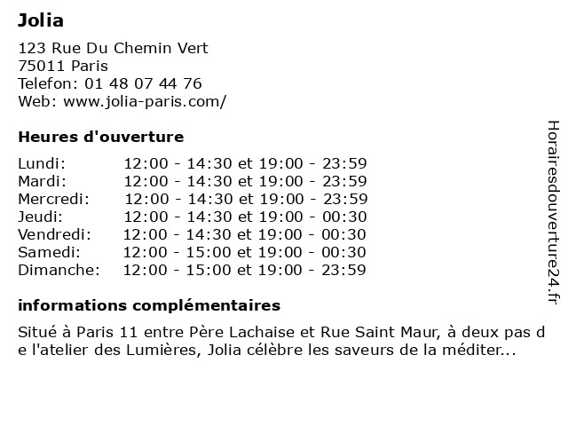 | Samedi | 12:00-15:00 et 19:00-00:30 |