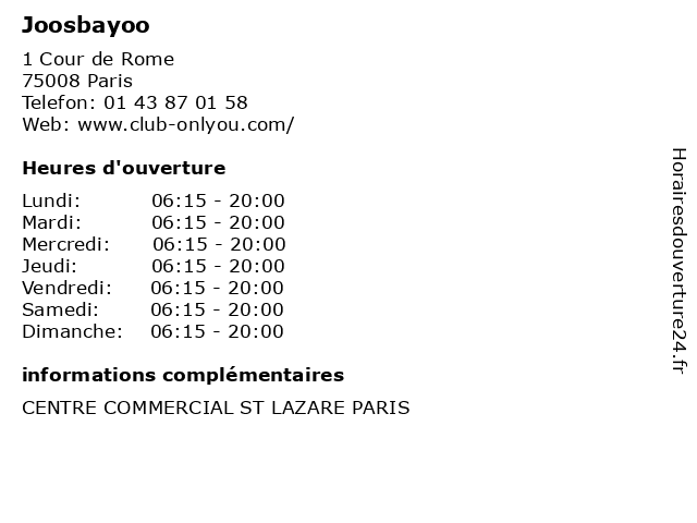 1 Joosbayoo (Distance: 0,24 km) 13 Rue d'Amsterdam, 75008 Paris cafe, chaussures, enfants, homme, joosbayoo, mode femme, restaurant, service, sport 2 Joosbayoo (Distance: 5,54 km) Centre Commercial Quartz 22 a, 92390 Villeneuve La Garenne joosbayoo, restaurants 3 Esprit (Distance: 0,00 km) 1 Cour de Rome, 75008 Paris alimentation, beauté & sante, culture & loisirs, enfants, esprit, high-tech, maison & déco, mode, restaurants 4 Foot Locker (Distance: 0,00 km) 1 Cour de Rome, 75008 Paris alimentation, beauté & sante, culture & loisirs, enfants, foot, high-tech, locker, maison & déco, mode, restaurants 5 Heller (Distance: 0,00 km) 1 Cour de Rome, 75008 Paris alimentation, beauté & sante, culture & loisirs, enfants, heller, high-tech, maison & déco, mode, restaurants 6 IZAC (Distance: 0,00 km) 1 Cour de Rome, 75008 Paris alimentation, beauté & sante, culture & loisirs, enfants, high-tech, izac, maison & déco, mode, restaurants |