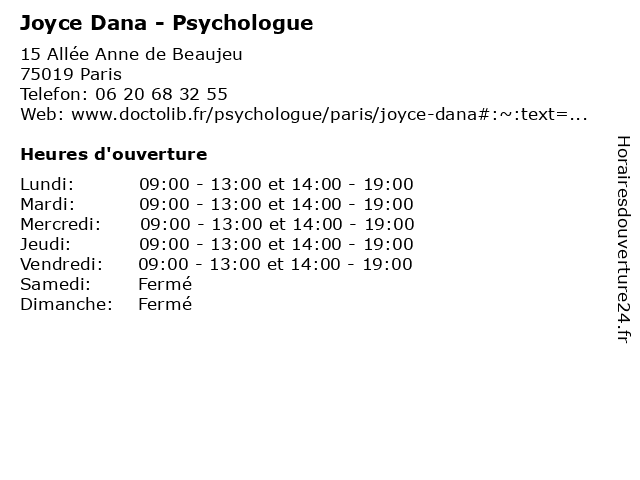 | Mardi | 09:00-13:00 et 14:00-19:00 |