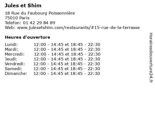 | Mardi | 12:00-14:45 et 18:45-22:30 |