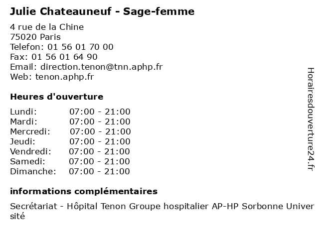 1 Julie Feuillebois - Sage-femme (Distance: 0,00 km) 4 rue de la Chine, 75020 Paris consultation, docteur, dr, femme, feuillebois, julie, med, médecin, sage, traitement 2 Julie Mauget - Sage-femme (Distance: 1,46 km) 48 boulevard Sérurier, 75019 Paris consultation, docteur, dr, femme, julie, mauget, med, médecin, sage, traitement 3 Dr Julie Bonheur-Seebacher - Pédiatre (Distance: 1,46 km) 48 boulevard Sérurier, 75019 Paris bonheur, consultation, docteur, dr, julie, med, médecin, pédiatre, seebacher, traitement 4 Restaurant La Table de Julie (Distance: 2,05 km) 234 Rue du Faubourg Saint-Antoine, 75011 Paris cuisine, de, julie, la, restaurant, restauration, table, terrasse, traditionnel 5 École maternelle publique Julie Daubie (Distance: 2,42 km) 12 Rue du Château, 93260 Les Lilas daubie, ecole, education, julie, maternelle, publique, services, école 6 Julie Abou Zaki - Psychologue (Distance: 2,45 km) 33 Rue du Faubourg Du Temple, 75010 Paris abou, cabinets, julie, médecins, psychologue, secrétariat, thérapies, zaki |