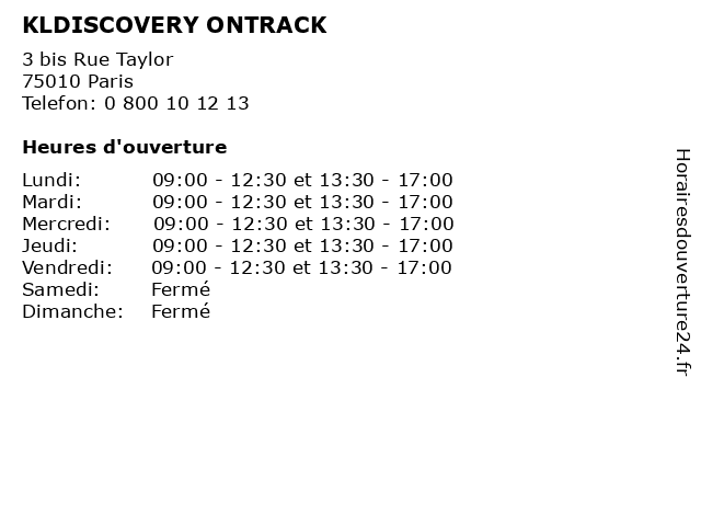 | Lundi | 09:00-12:30 et 13:30-17:00 |