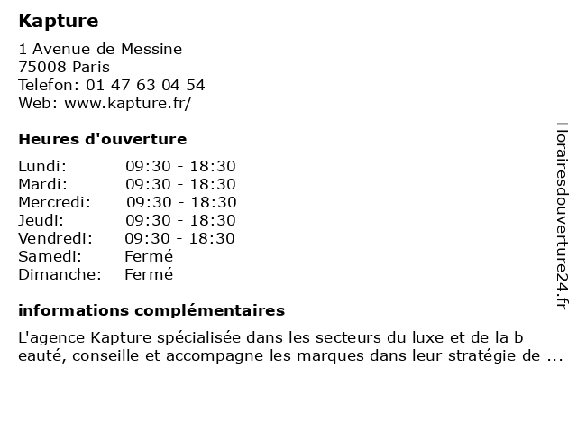 1 Agence Romance (Distance: 0,10 km) 39 Rue de la Bienfaisance, 75008 Paris agence, agences, communication, creative, publicité, romance 2 Matador Marketing (Distance: 0,15 km) 139 Boulevard Haussmann, 75008 Paris agences, communication, marketing, matador, publiques, relations 3 Shortcut (Distance: 0,29 km) 22 Rue de Téhéran, 75008 Paris agences, communication, creative, publicité, shortcut 4 Bridge Communication (Distance: 0,43 km) 91 Rue du Faubourg Saint-Honoré, 75008 Paris agences, bridge, communication, marketing, publiques, relations 5 CLAI - Corporate Advocacy (Distance: 0,47 km) 12 bis Place Henri Bergson, 75008 Paris advocacy, agences, clai, communication, corporate, marketing, publiques, relations 6 Hungry and Foolish (Distance: 0,79 km) 69 Boulevard Haussmann, 75008 Paris agences, and, communication, foolish, hungry, marketing, publiques, relations |