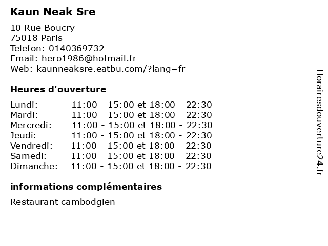 | Lundi | 11:00-15:00 et 18:00-22:30 |