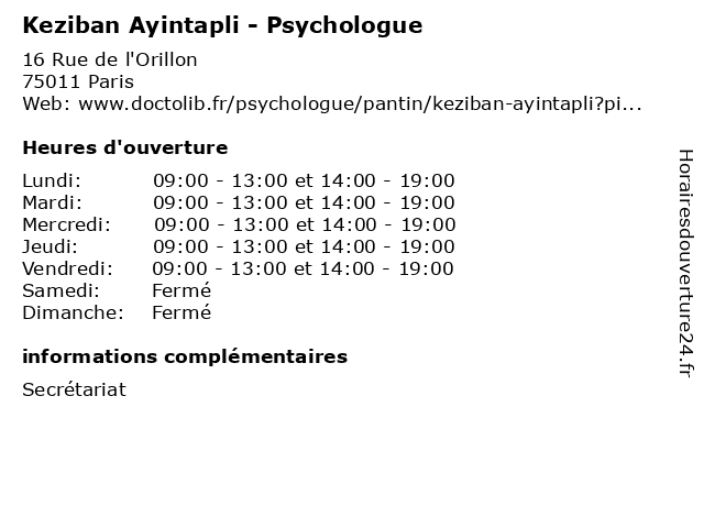 | Lundi | 09:00-13:00 et 14:00-19:00 |