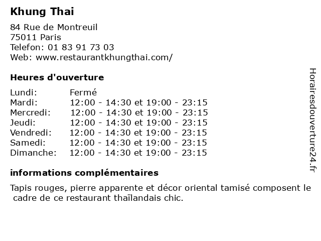 Termes de recherche pour Khung Thai:restauration, restaurant, café, bar, bistrot, brasserie, thai, bistro, khung |