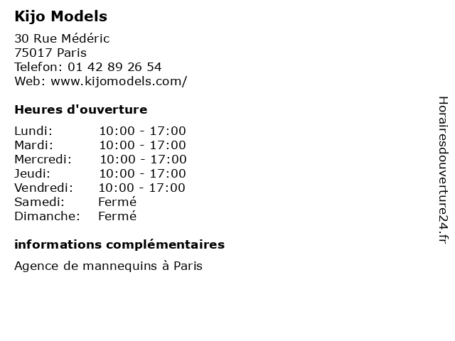 1 Bananas Models (Distance: 0,44 km) 9 Avenue Hoche, 75008 Paris agence, bananas, mannequins, models, modèl´s, modélisation 2 Karin Models (Distance: 0,91 km) 99 Avenue Hoche, 75008 Paris agence, karin, mannequins, models, modèles, publicitaires 3 IMG Models (Distance: 0,96 km) 20 Rue de la Baume, 75008 Paris agence, img, mannequins, models, modèles, publicitaires 4 Metropolitan Models (Distance: 1,58 km) 37 Bis Avenue d'Iéna, 75116 Paris agence, mannequins, metropolitan, models, modèl´s, modélisation 5 Ford Models (Distance: 2,55 km) 278 Boulevard Saint-Germain, 75007 Paris agence, ford, mannequins, models, modèl´s, modélisation, paris 6 City Models (Distance: 3,83 km) 137 Boulevard de Sébastopol, 75002 Paris agence, city, mannequins, models, modèles, publicitaires |