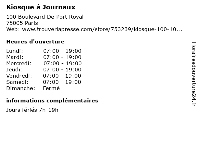 1 Kiosque à Journaux (Distance: 0,67 km) 105 Boulevard Du Montparnasse, 75006 Paris journaux, kiosque, magazine, presse, revues 2 Kiosque à Journaux (Distance: 1,03 km) 7 avenue Des Gobelins, 75005 Paris journaux, kiosque, magazine, presse, revues 3 Kiosque à Journaux (Distance: 1,04 km) 98 Rue Monge, 75005 Paris journaux, kiosque, magazine, presse, revues 4 Kiosque à Journaux (Distance: 1,11 km) 1 place Monge, 75005 Paris journaux, kiosque, magazine, presse, revues 5 Kiosque à Journaux (Distance: 2,55 km) 8 place du Palais Royal, 75001 Paris journaux, kiosque, magazine, presse, revues 6 Kiosque à Journaux (Distance: 2,80 km) 14 rue de Turbigo, 75001 Paris journaux, kiosque, magazine, presse, revues |