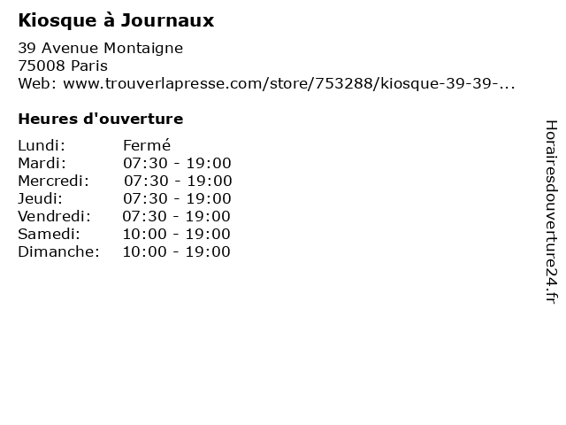 1 Kiosque à Journaux (Distance: 1,40 km) 41 Avenue De La Motte Picquet, 75007 Paris journaux, kiosque, magazine, presse, revues 2 Kiosque à Journaux (Distance: 1,92 km) 17 boulevard des Capucines, 75002 Paris journaux, kiosque, magazine, presse, revues 3 Kiosque à Journaux (Distance: 2,01 km) 150 avenue Victor Hugo, 75016 Paris journaux, kiosque, magazine, presse, revues 4 Kiosque à Journaux (Distance: 2,04 km) 21 avenue de l'Opéra, 75001 Paris journaux, kiosque, magazine, presse, revues 5 Kiosque à Journaux (Distance: 2,07 km) 1 boulevard des Capucines, 75002 Paris journaux, kiosque, magazine, presse, revues 6 Kiosque à Journaux (Distance: 2,51 km) 27 rue Vivienne, 75002 Paris journaux, kiosque, magazine, presse, revues |