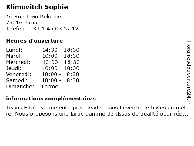 | Samedi | 10:00-18:30 |
