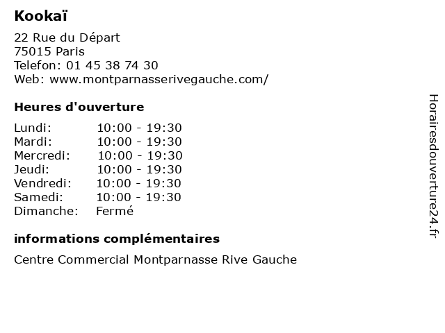 1 Kookaï (Distance: 10,63 km) 101 Avenue du Général de Gaulle, 94000 Créteil accessoire, chaussures, habillement, kookaï, mode, pret-a-porter, vetements 2 Lacoste (Distance: 0,00 km) 22 Rue du Départ, 75015 Paris beaute, cafe, chaussures, enfants, lacoste, mode femmes, mode hommes, restaurant, sport 3 DARTY (Distance: 0,51 km) 68-80 Avenue du Maine, 75014 Paris beaute, cafe, chaussures, darty, enfants, hommes, lingerie, mode femmes, restaurant, sport 4 Hygena (Distance: 0,51 km) 68-80 Avenue du Maine, 75014 Paris beaute, cafe, chaussures, enfants, hommes, hygena, lingerie, mode femmes, restaurant, sport 5 I Taglia (Distance: 0,51 km) 68-80 Avenue du Maine, 75014 Paris beaute, cafe, chaussures, enfants, hommes, lingerie, mode femmes, restaurant, sport, taglia 6 Institut (Distance: 0,51 km) 68-80 Avenue du Maine, 75014 Paris beaute, cafe, chaussures, enfants, hommes, institut, lingerie, mode femmes, restaurant, sport |