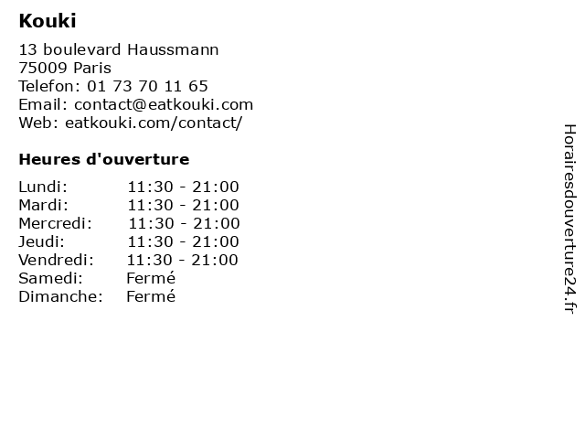 | Vendredi | 11:30-21:00 |