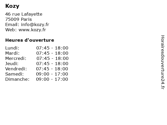 3 Kozy Kanopé - All day Brunch & Coffee (Distance: 0,00 km) 46 Rue La Fayette, 75009 Paris all, boutique de chocolat, brunch, café, coffee, day, kanopé, kozy, restaurant pour le petit-déjeuner, restaurant végétarien, restaurants 4 Kozy Montmartre (Distance: 1,12 km) 5 bis Rue La Vieuville, 75018 Paris boutique de chocolat, café, café-restaurant, kozy, montmartre, restaurant pour le petit-déjeuner, restaurant végétarien, restaurants 5 Kozy Pompidou | All-week Brunch | Coffee (Distance: 1,71 km) 133 Rue Saint-martin, 75004 Paris all, boulangeries, brunch, café, coffee, kozy, pompidou, restaurant pour le petit-déjeuner, restaurants, week 6 Kozy Notre Dame- All day Brunch & Coffee (Distance: 2,52 km) 6 Rue Du Petit Pont, 75005 Paris all, boutique de chocolat, boutique de gâteaux, brunch, café, coffee, dame, day, kozy, notre, restaurant pour le petit-déjeuner, restaurant végétalien, restaurants |