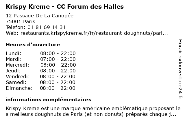 Termes de recherche pour Krispy Kreme - CC Forum des Halles:café, des, halles, cc, forum, boulangeries, boutique de desserts, krispy, kreme, boutique de chocolat |