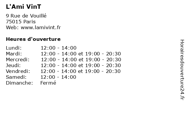 | Mardi | 12:00-14:00 et 19:00-20:30 |
