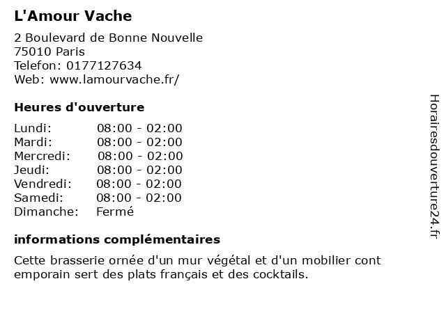 Termes de recherche pour L'Amour Vache:restauration, restaurant, café, bar, bistrot, brasserie, pub, resto, bistro, vache, l'amour |