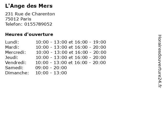 | Lundi | 10:00-13:00 et 16:00-19:00 |