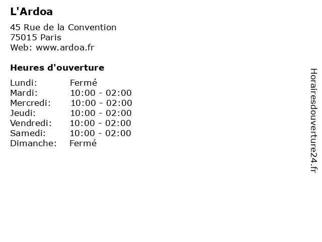 | Samedi | 10:00-02:00 |