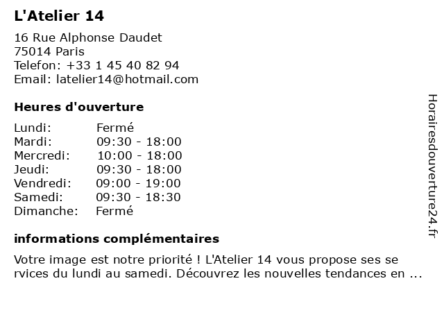 Termes de recherche pour L'Atelier 14:14, l'atelier |