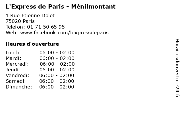| Samedi | 06:00-02:00 |