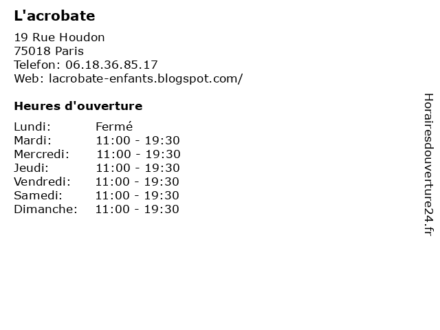 | Samedi | 11:00-19:30 |