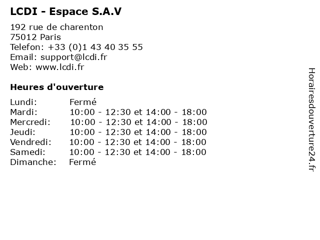 | Samedi | 10:00-12:30 et 14:00-18:00 |