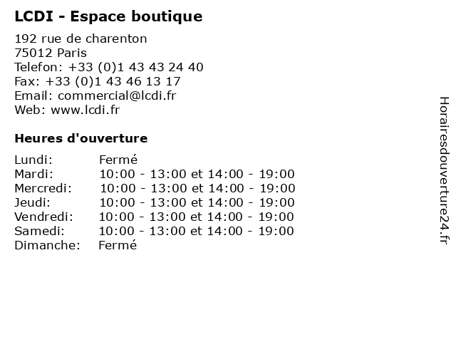 | Samedi | 10:00-13:00 et 14:00-19:00 |