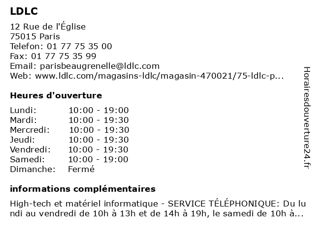 1 LDLC (Distance: 4,91 km) 6 boulevard de Sébastopol, 75004 Paris consoles, gps, image & son, informatique, jeux, ldlc, telephonie 2 LDLC (Distance: 5,48 km) 30-32 Rue Victor Hugo, 92300 Levallois-Perret informatique, internet, ldlc, mobile, téléphone 3 LDLC (Distance: 13,75 km) 2 allée du 7ème art, 95240 Cormeilles-en-Parisis conseils, gaming, high-tech, informatique, ldlc, multimédia, téléphonie 4 LDLC (Distance: 19,26 km) 67 Boulevard Vauban, 78180 Montigny Le Bretonneux image et son, jeux et consoles, ldlc, ldlc.com, ordinateurs, téléphonie et gps 5 Photo Saint Charles (Distance: 0,46 km) 158 Rue Saint Charles, 75015 Paris charles, image, magasin, photo, photographie, saint 6 Photo Saint Charles - Août (Distance: 0,46 km) 158 Rue Saint Charles, 75015 Paris août, au, charles, d'aout, image, magasin, mois, photo, photographie, saint |