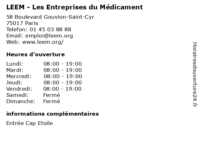 | Lundi | 08:00-19:00 |