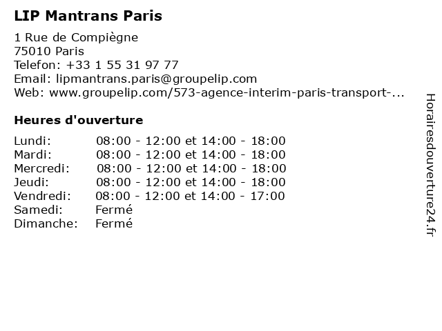 1 Mantrans (Distance: 0,02 km) 1 rue de Compiègne, 75010 Paris emploi, mantrans, recrutement, temporaire, trasport, travail 3 Groupe Lip (Distance: 1,73 km) 282 Boulevard Voltaire, 75011 Paris agence, emploi, groupe, interim, lip, recrute 4 Groupe Lip - Tertiaire & Ingénierie (Distance: 1,94 km) 12 Rue Auber, 75009 Paris agence, emploi, groupe, ingénierie, interim, lip, recrute, tertiaire 5 LIP Solutions RH Médical Paris (Distance: 2,19 km) 61 Rue de l'Arcade, 75008 Paris emploi milieu hospitalier, emploi médical, emploi social, lip, médical, paris, rh, social, solutions 6 LIP Intérim & Recrutement Tertiaire & Services Paris (Distance: 2,19 km) 61 Rue de l'Arcade, 75008 Paris ingénierie, intérim, lip, paris, recrutement, services, tertiaire |