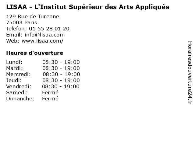 | Lundi | 08:30-19:00 |