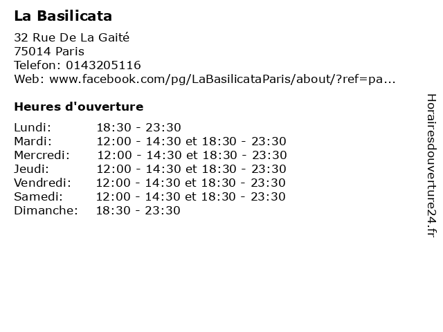 | Mardi | 12:00-14:30 et 18:30-23:30 |