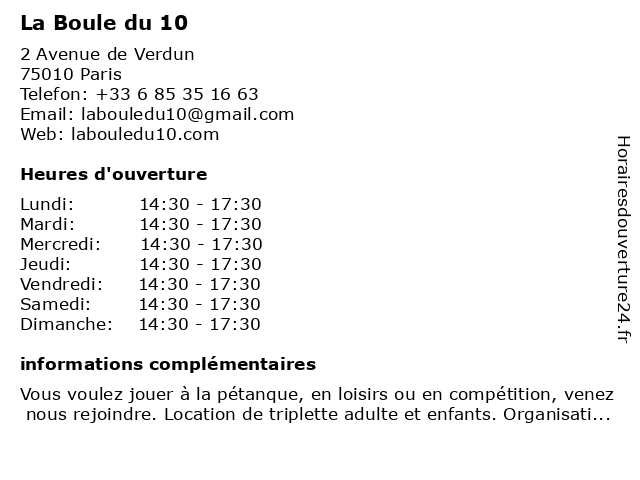 | Dimanche | 14:30-17:30 |