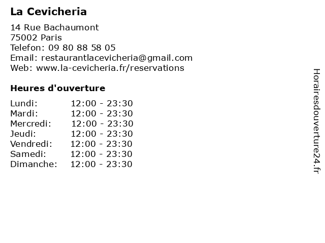 | Dimanche | 12:00-23:30 |