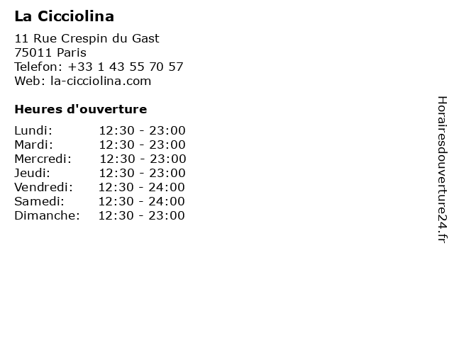 | Dimanche | 12:30-23:00 |