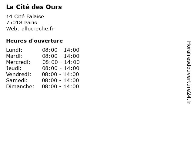 | Samedi | 08:00-14:00 |