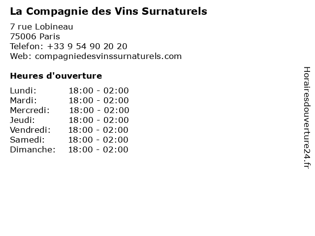 | Lundi | 18:00-02:00 |