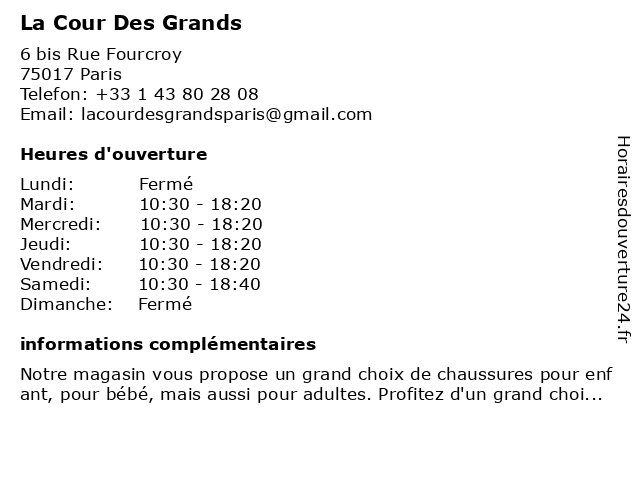| Lundi | Fermé |