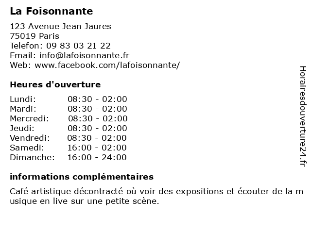 | Samedi | 16:00-02:00 |