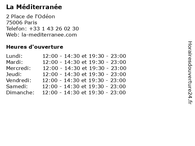 Lundi | 12:00-14:30 et 19:30-23:00 |