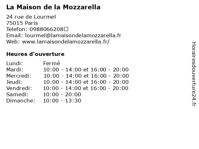 1 La Maison de la Mozzarella (Distance: 0,29 km) 15 Rue Violet, 75015 Paris alimentation, charcuterie, de, fromage, italienne, jambon, la, maison, mozzarella, épicerie 2 Madame Mozzarella (Distance: 3,96 km) 6 Rue De Choiseul, 75002 Paris madame, mozza, mozzarella, restaurants 3 Mozzato Comptoir à Mozzarella (Distance: 4,45 km) 3 Rue Bachaumont, 75002 Paris comptoir, ii, mozzarella, mozzato, paris, restaurants 4 Pomodoro & Mozzarella (Distance: 4,49 km) Pomodoro & Mozzarella 73 75, 75004 Paris huang, mozzarella, pomodoro, restaurants, wang 5 Thomas Fromager (Distance: 0,48 km) 66 Rue du Commerce, 75015 Paris alimentation, fromage, fromager, fromagerie, thomas, épicerie 6 Da Zavola (Distance: 0,69 km) 6 rue Mademoiselle, 75015 Paris apéritifs dînatoires à l'italienne, café, da, service traiteur, zavola |