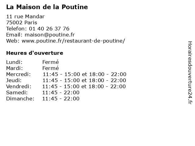Mercredi | 11:45-15:00 et 18:00-22:00 |