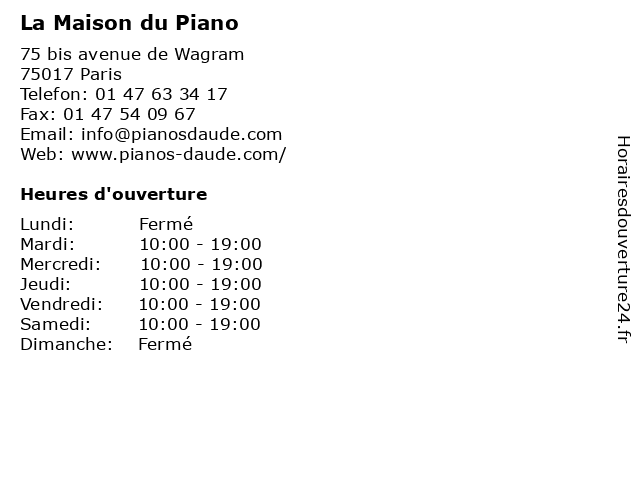 1 Cours de Piano Carpentier (Distance: 0,48 km) 3 Avenue Hoche, 75008 Paris carpentier, cours, de, piano 3 L'école du Piano autrement - EPA (Distance: 1,64 km) 78 Rue de Rome, 75008 Paris autrement, du, epa, l'école, paris, piano, école 4 Piano En Libre Service (Distance: 2,00 km) . Place du 11 novembre 1918, 75010 Paris cafe, care, chaussures, en, enfants, homme, libre, lingerie, mode femme, piano, restaurant, service, shopping 5 Centre d'animation Binet / Piano (Distance: 3,54 km) 28 avenue de la Porte de Montmartre, 75018 Paris binet, centre, centres d'animation, d'animation, equipement, jardins, l'heure, livre, médiathèque, piano, services 6 Renzo Piano Building Workshop (Distance: 4,77 km) 34 Rue des Archives, 75004 Paris architect, building, buildings, piano, renzo, services, workshop |