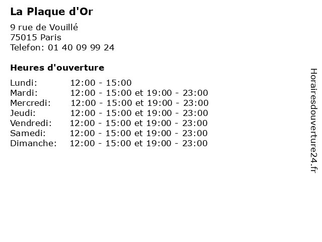 | Vendredi | 12:00-15:00 et 19:00-23:00 |