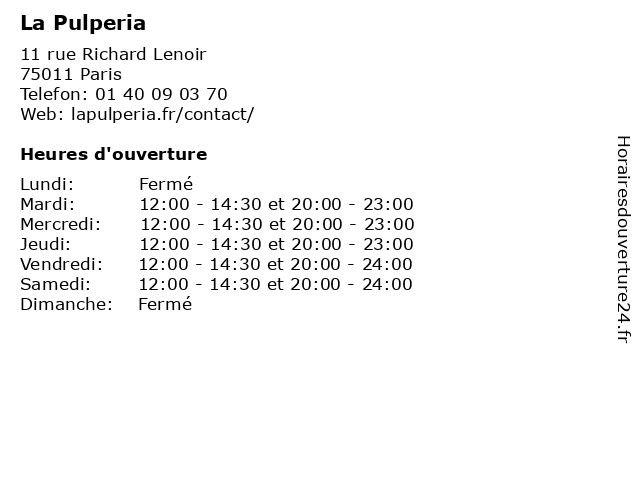 | Mardi | 12:00-14:30 et 20:00-23:00 |